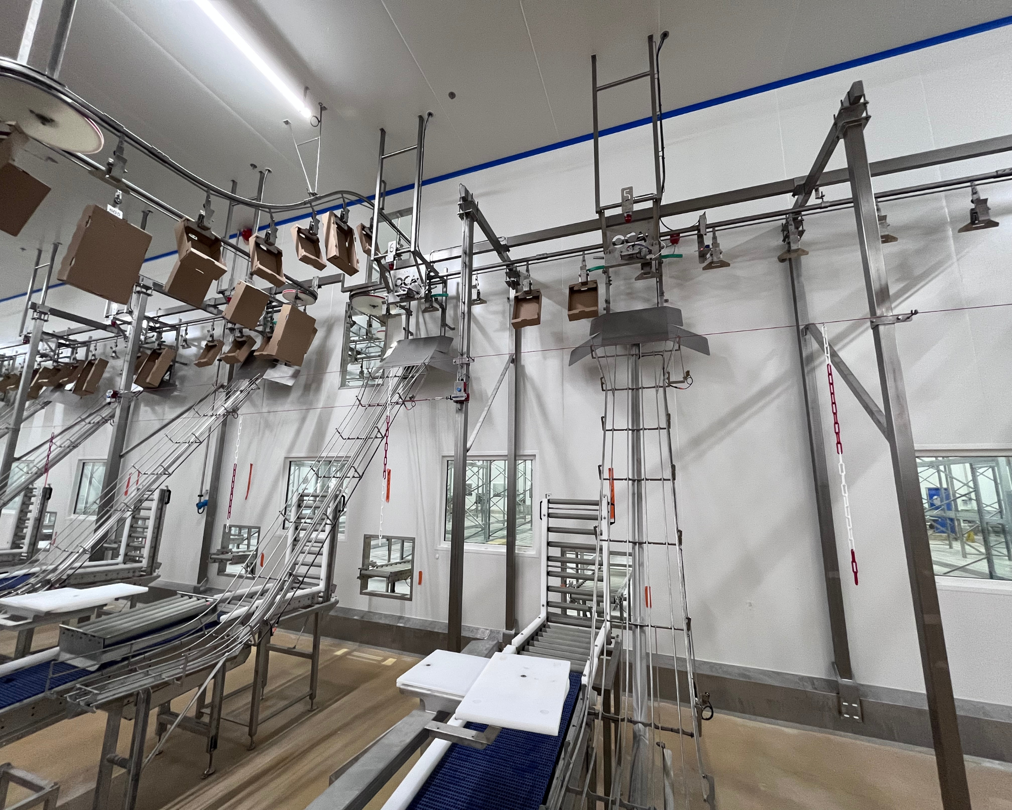 Il y a quelques mois, notre client a fait appel à OCA pour relever un nouveau défi : concevoir un nouvel abattoir possédant des lignes de production flexibles, capables de passer d’une production à une autre et de s’adapter en peu de temps à des flux de fabrication différents. Fortes de leurs expériences dans la manutention aérienne agroalimentaire, nos équipes ont su répondre à ces exigences techniques.
